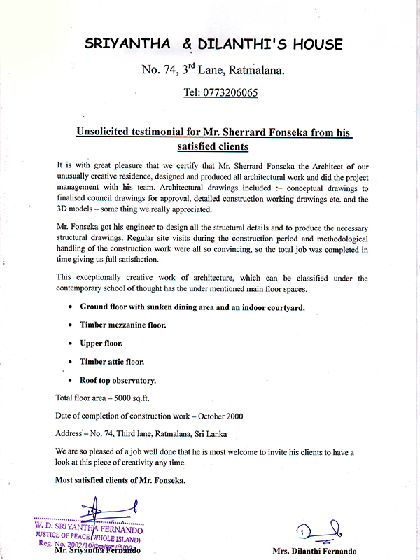 He returned to Sri Lanka in 1994 from the U.K. He completed a Masters Degree in Art & Architecture from the Kent Institute of Art and Design (University of Kent). Living abroad for eight years as a student in the Mediterranean and Europe gave me the foundation for everything He has accomplished to date. So far He has undertaken more than 40 architectural design projects in this country and some of them were turnkey projects- (both design and construction.) Among the clients are some reputed individuals and companies, some foreign based clients has also availed of my services.