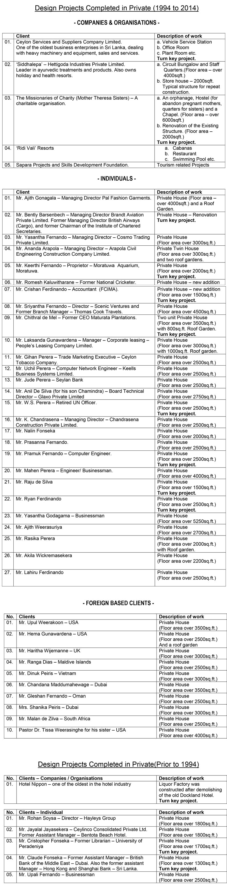 2. PROJECTS COMPLETED IN PRIVATE CAPACITY